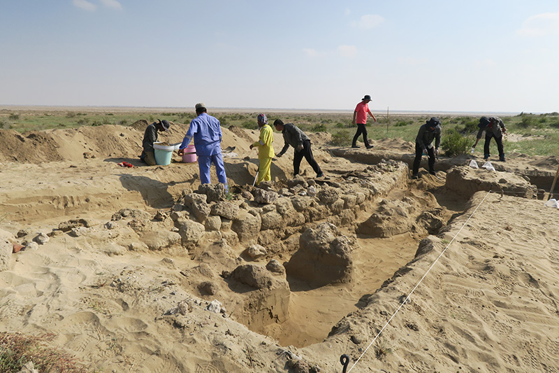 2019年1月12日,中沙考古队员在沙特塞林港遗址现场工作。新华社发(王霁 摄)